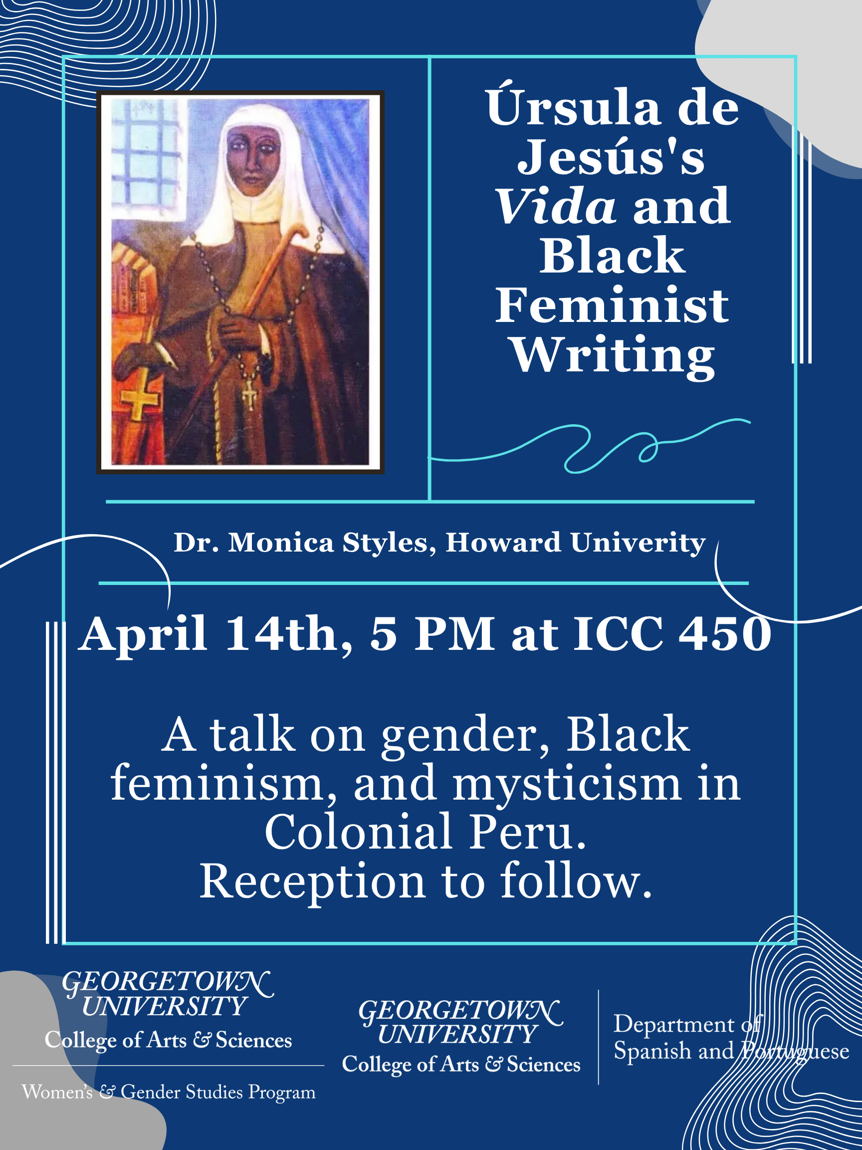 Talk: Úrsula de Jesús’s Vida and Black Feminist Writing Join us for a talk on gender, Black feminism, and mysticism in Colonial Peru by Dr. Monica Styles from Howard…