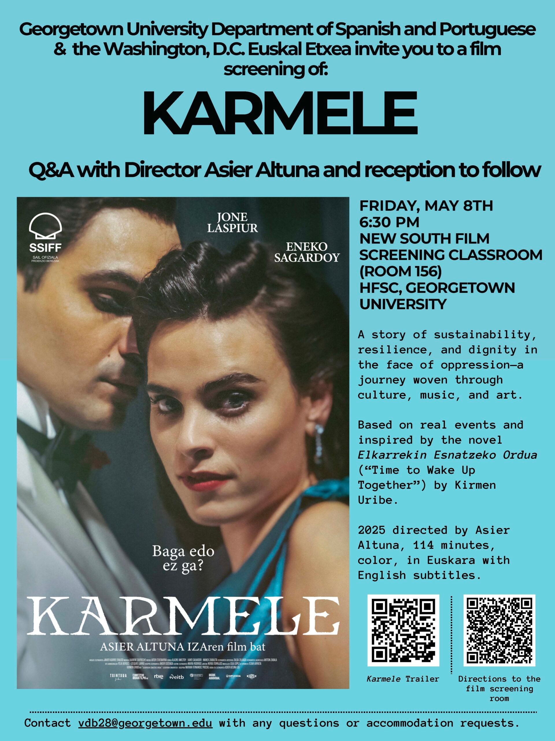 Mark your calendars for a special screening of the film Karmele (Asier Altuna, 2025), which will take place here at Georgetown University on May 8th at 6:30 PM EST. Location: HFSC New South…